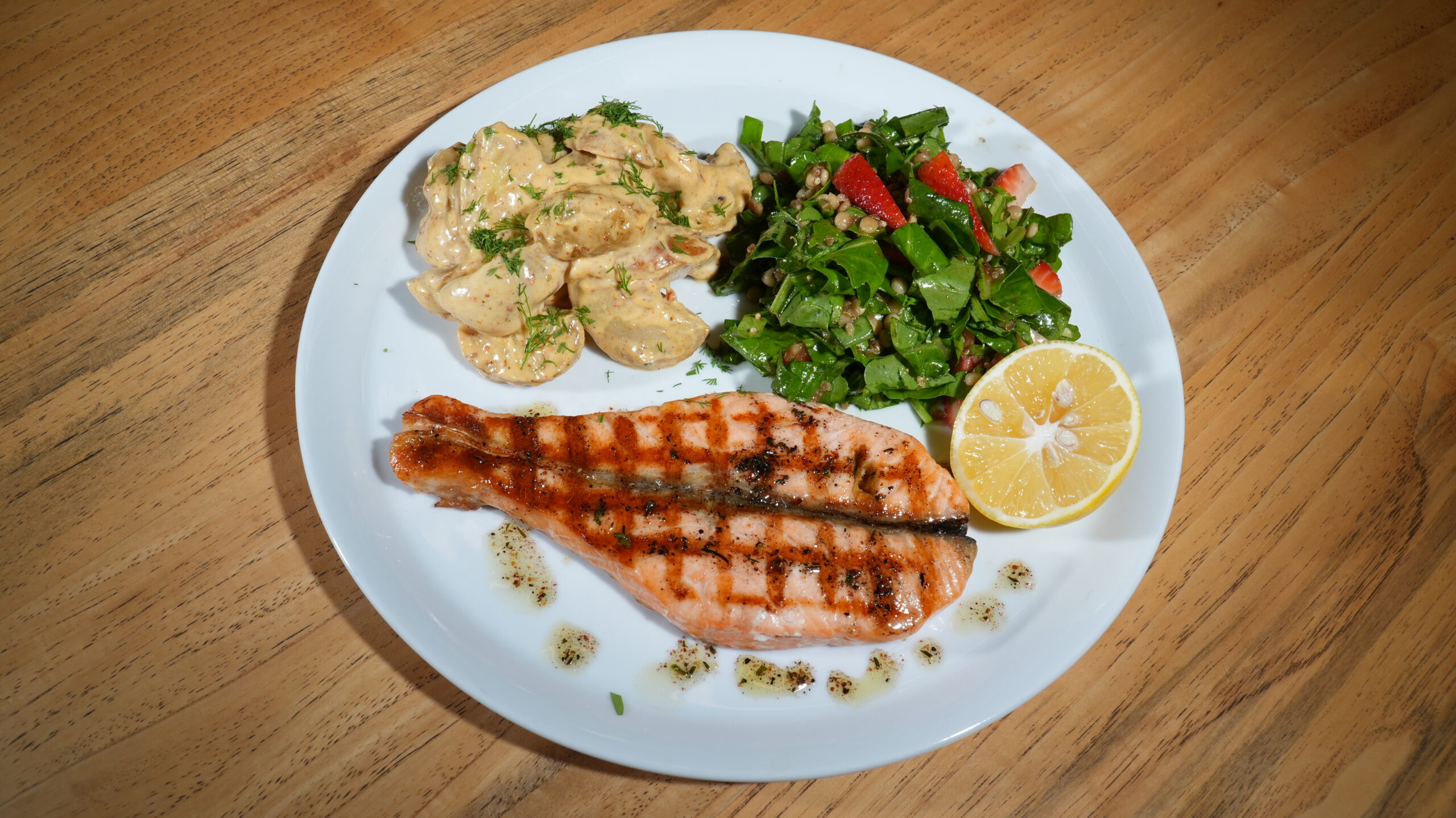Norveç Somonu, Patates Salatası, Limon , Kuskus ve Roka ile